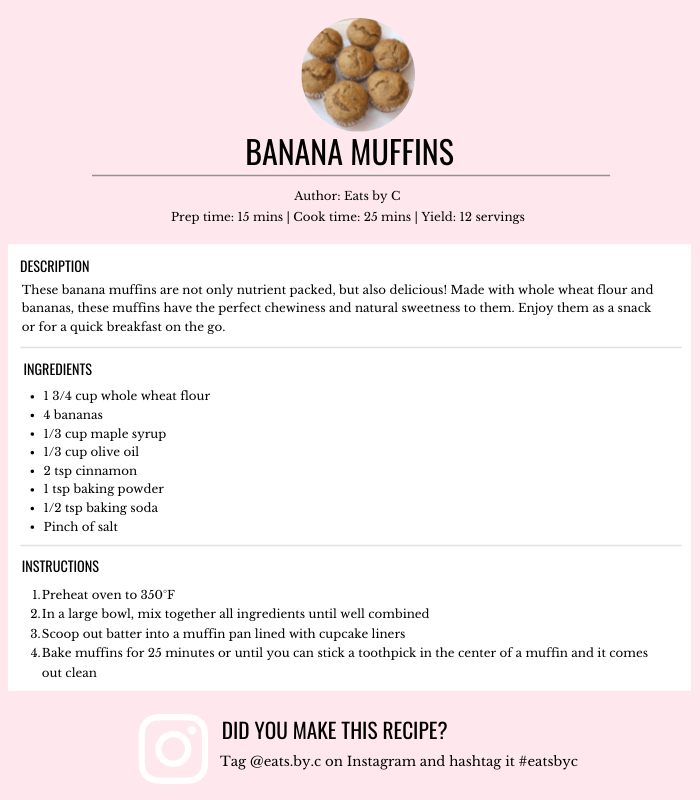 - Maple Syrup: makes muffins sweet, enhances natural sweetness from the bananas